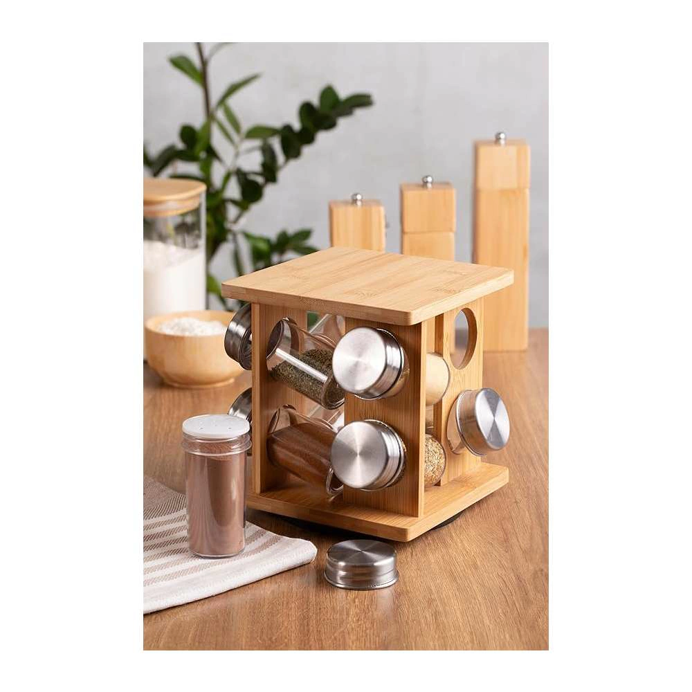 PORTA CONDIMENTOS GIRATÓRIO EM BAMBU COM 8 POTES – MIMO STYLE